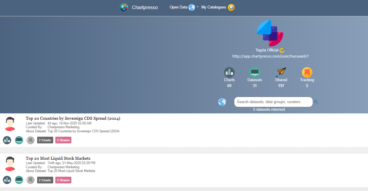 Search public datasets or publish your own. Visualize using charts and share on social media platforms. Write stories about your insights. Always have live version of your charts by automating your data-pipeline to pull data periodically. Your charts are never go out of date again.