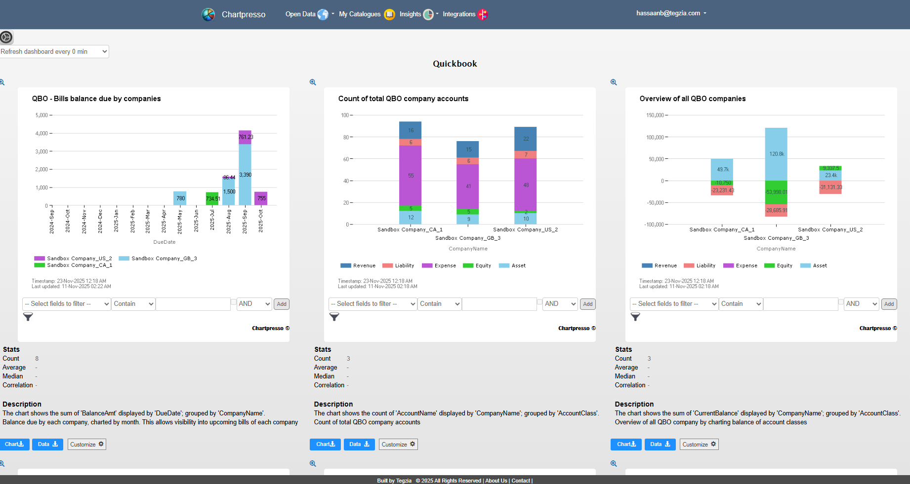 Build your own business analytics portfolio by curating datasets and publish desired information. Establish data pipelines, slice, dice, drilldown and analyze all from web interface. Your information is never stale. Always have live version of your charts by automating your data-pipeline to pull data periodically.