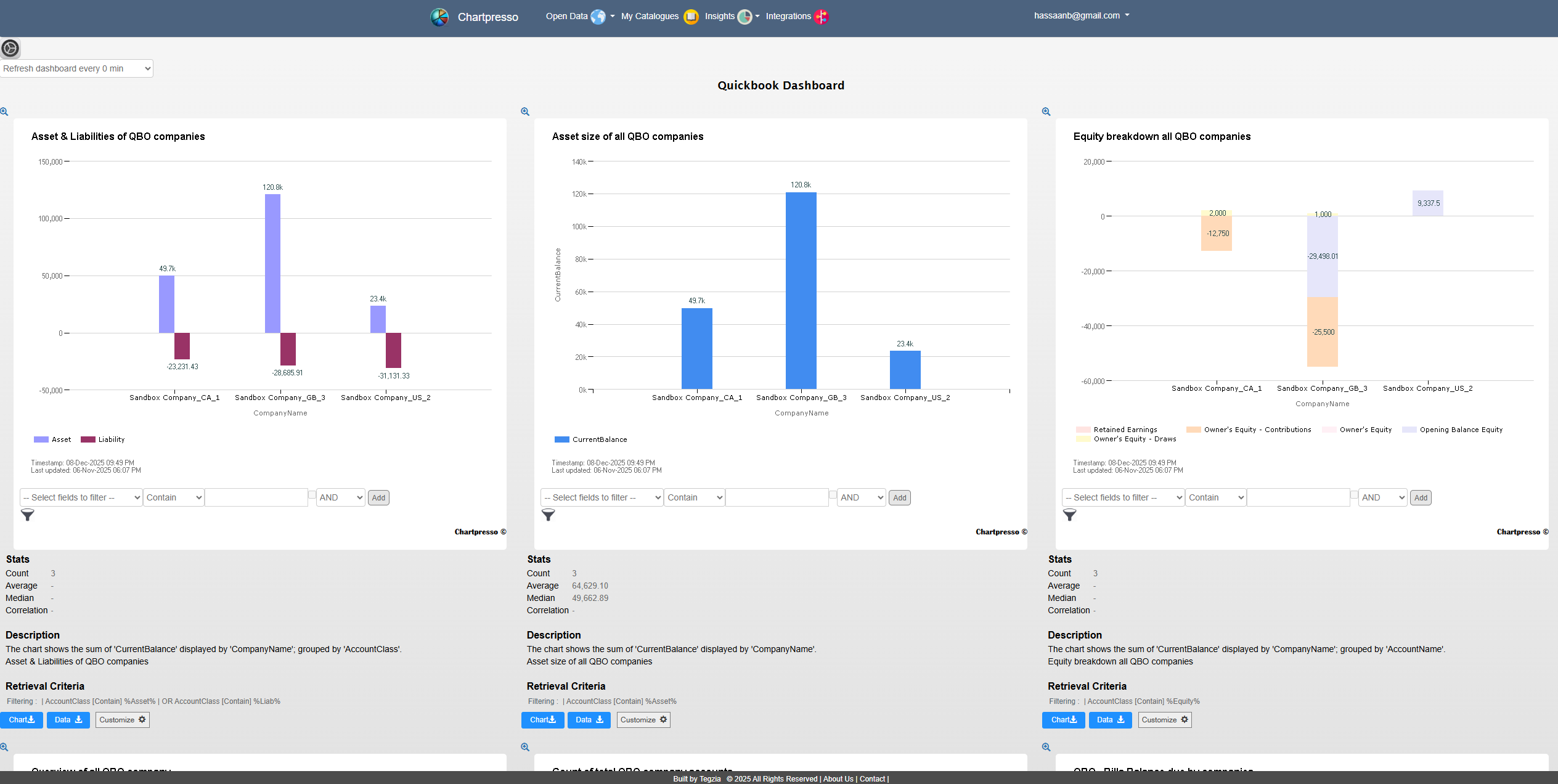 Chartpresso brings your financial data to life by seamlessly integrating with QuickBooks. This integration allows businesses to transform accounting records into clear, interactive dashboards that drive smarter decisions.
