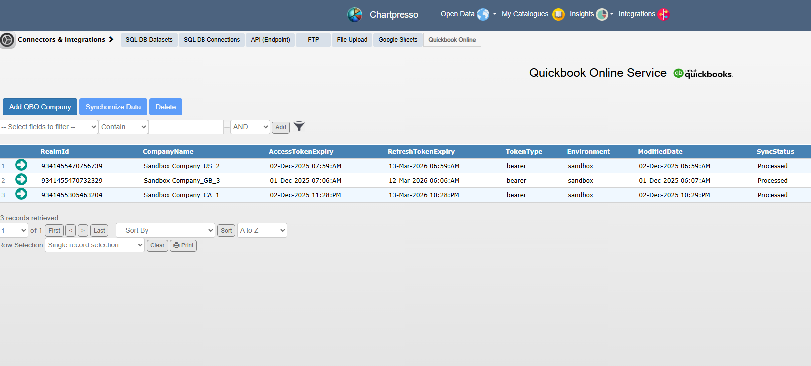 Connect your QuickBooks account to Chartpresso by securely authorizing access through Intuit OAuth Process. This process ensures your financial data is safely linked without compromising security.